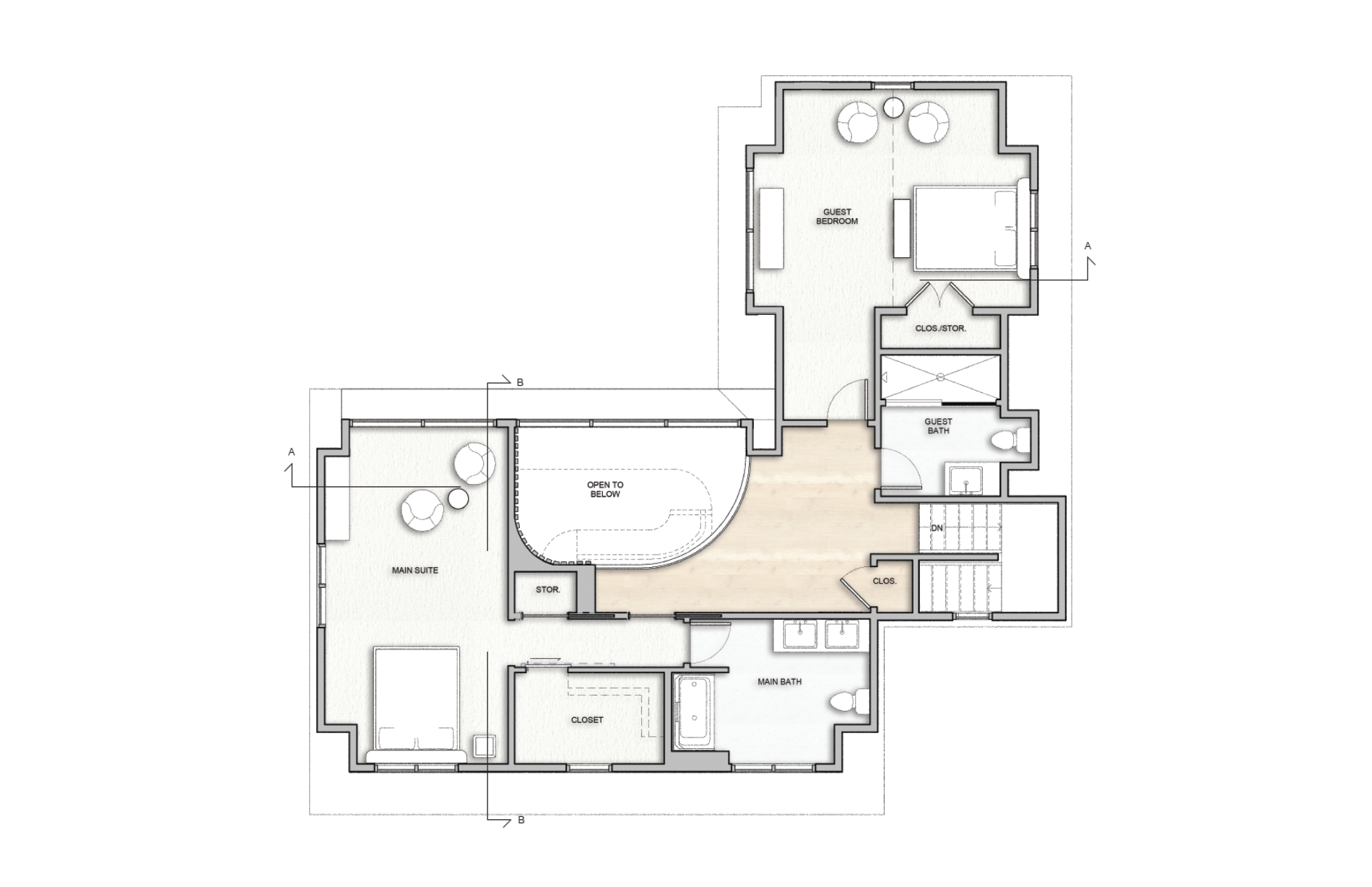 Additionally, the client had requirements that had to be kept in mind for the design, such as a dedicated "Work-from-Home" space and incorporating "Home for a Lifetime" elements so that as the owners age, daily life activities will still be accessible.
